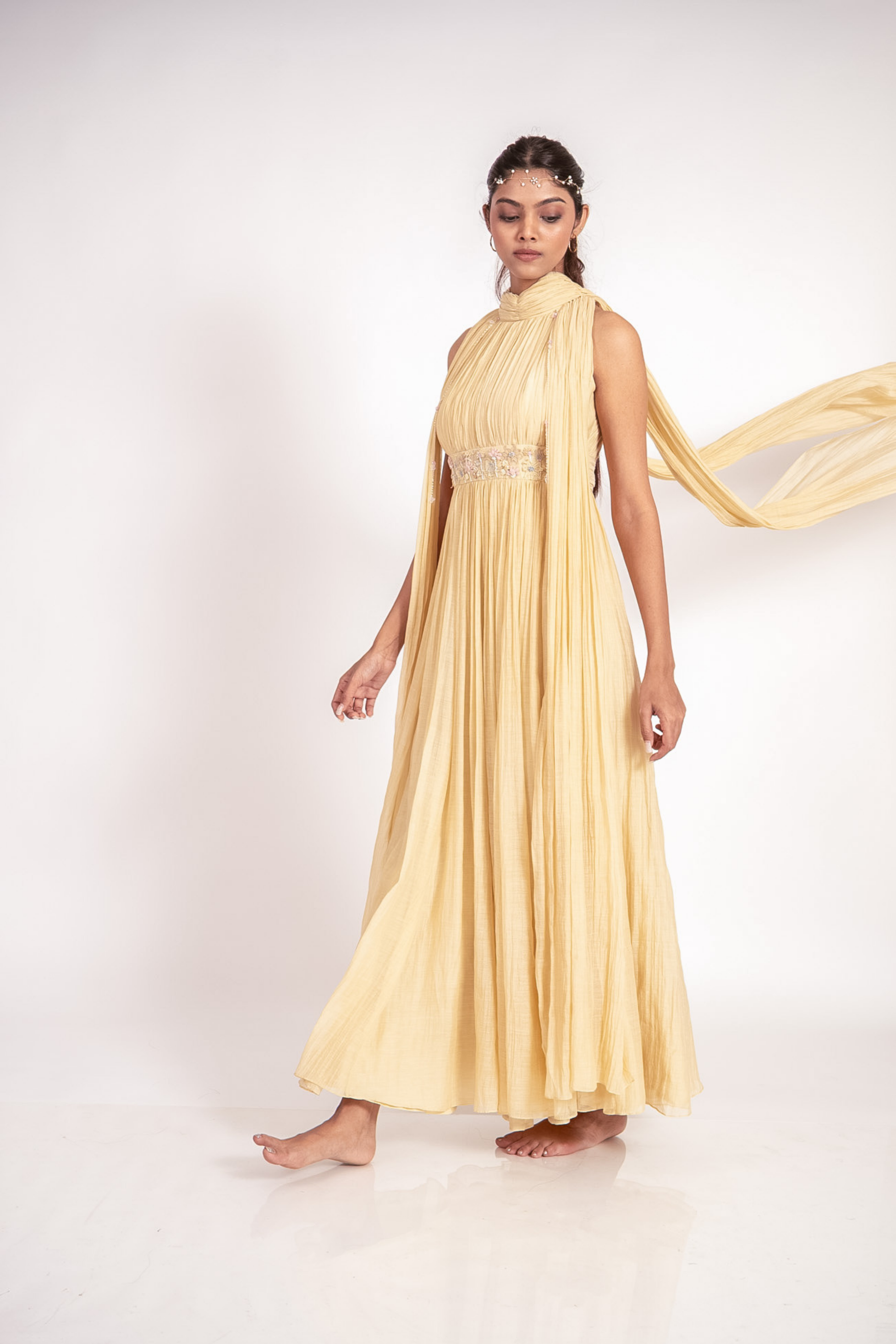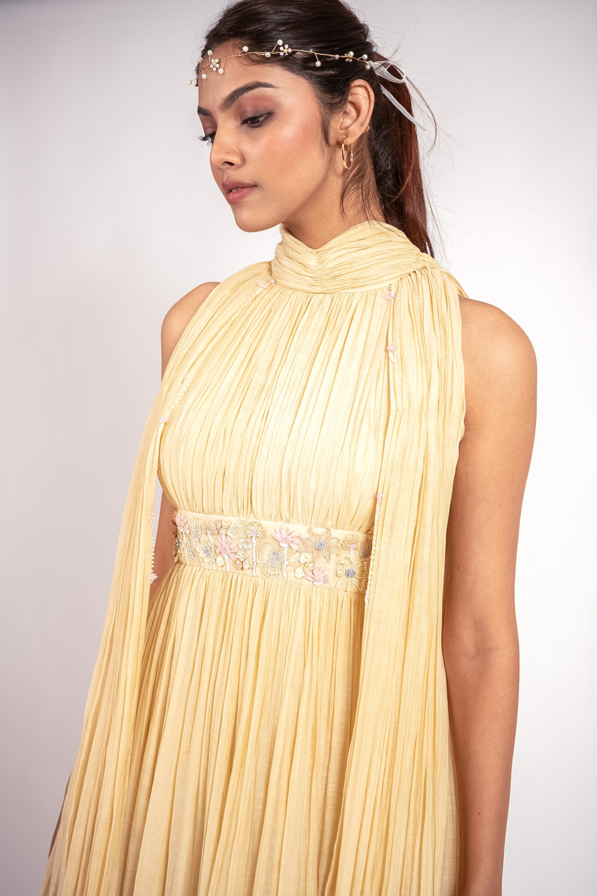 "A halter-neck maxi dress with flowing drapes, Ardelle is inspired by soft oriental floral fragrances.