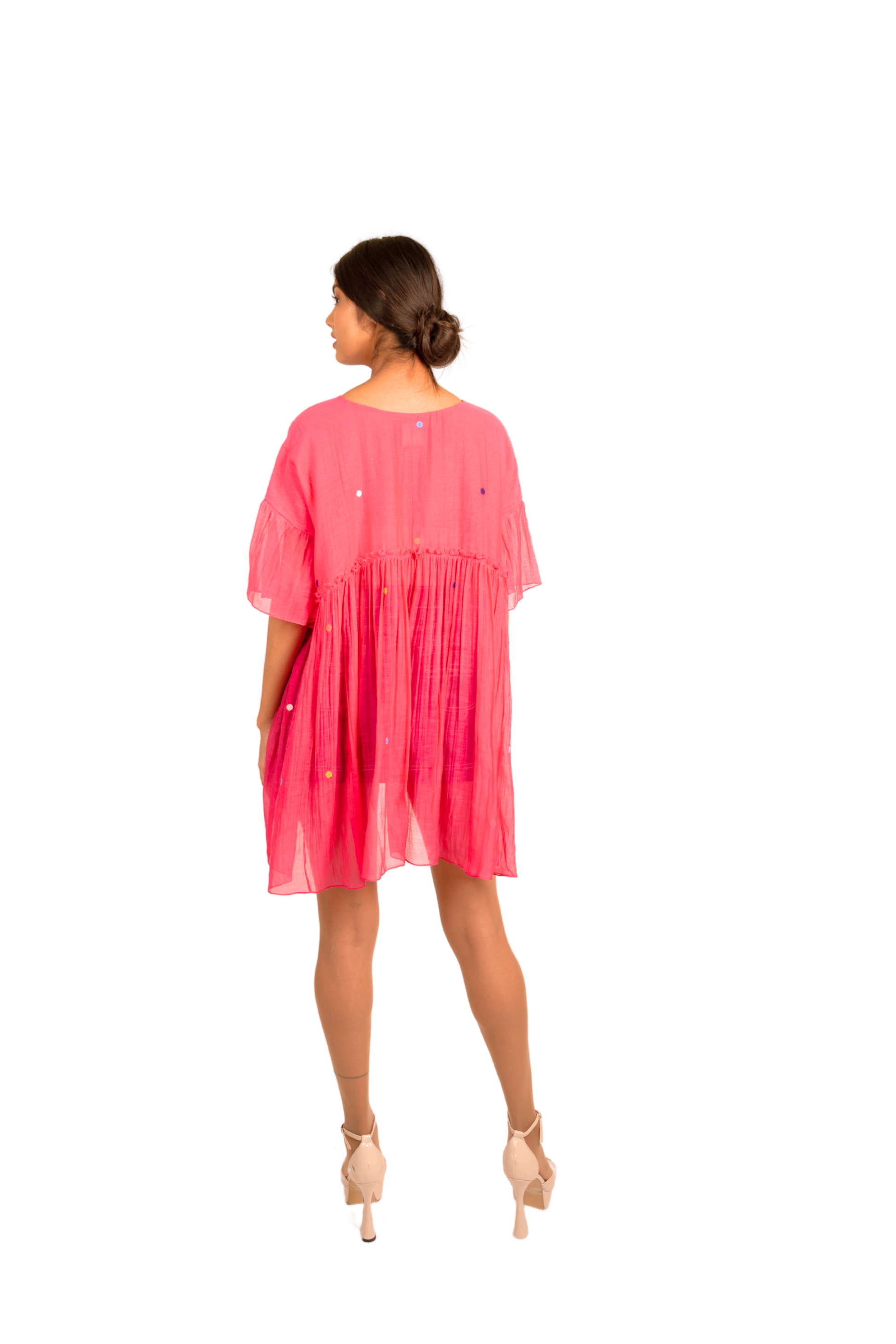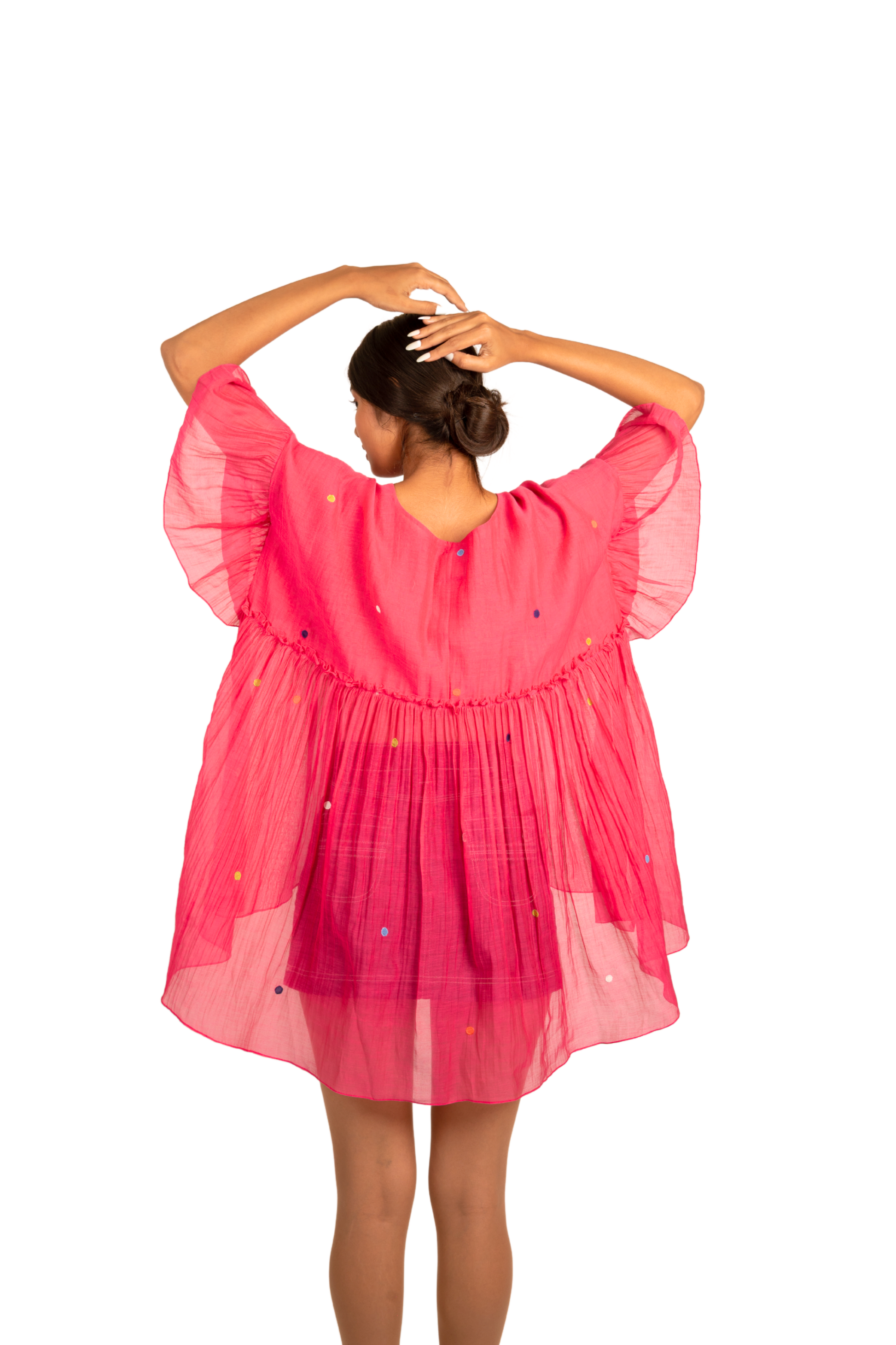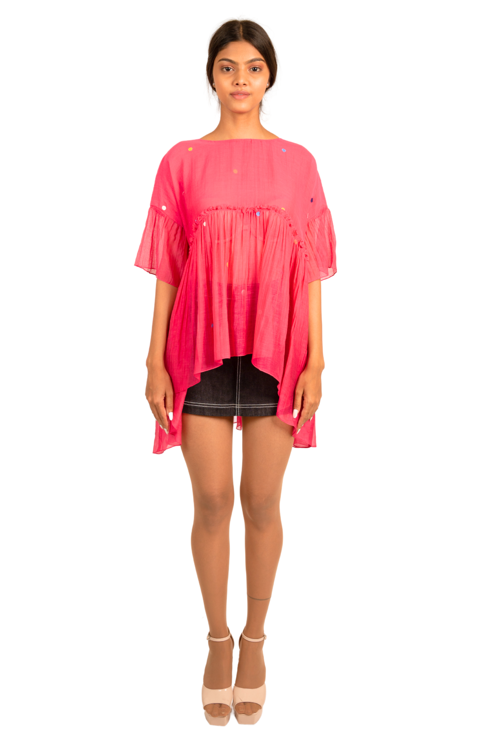 This chanderi mulmul top is a bundle of joy, scattered with cute dots and full of lively flare. Its playful design makes it the perfect choice for those carefree beach holidays, where comfort meets cheerful style.