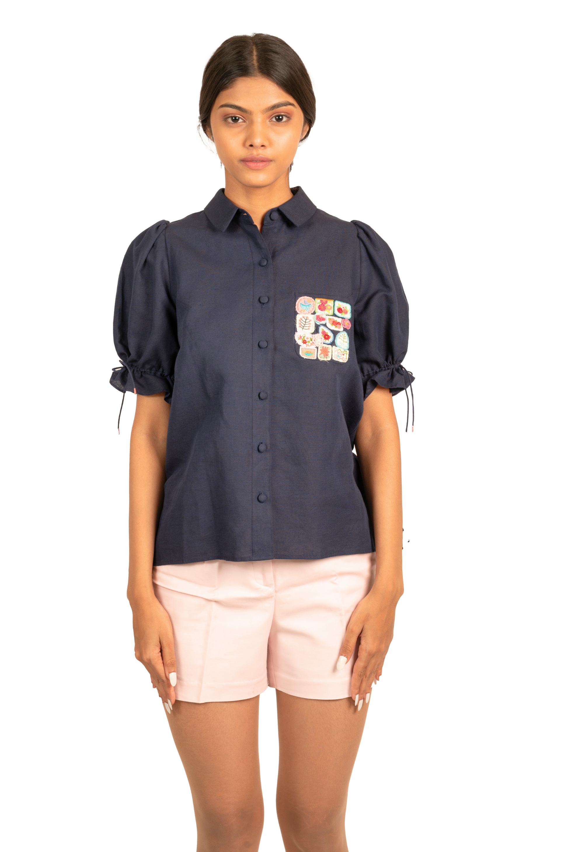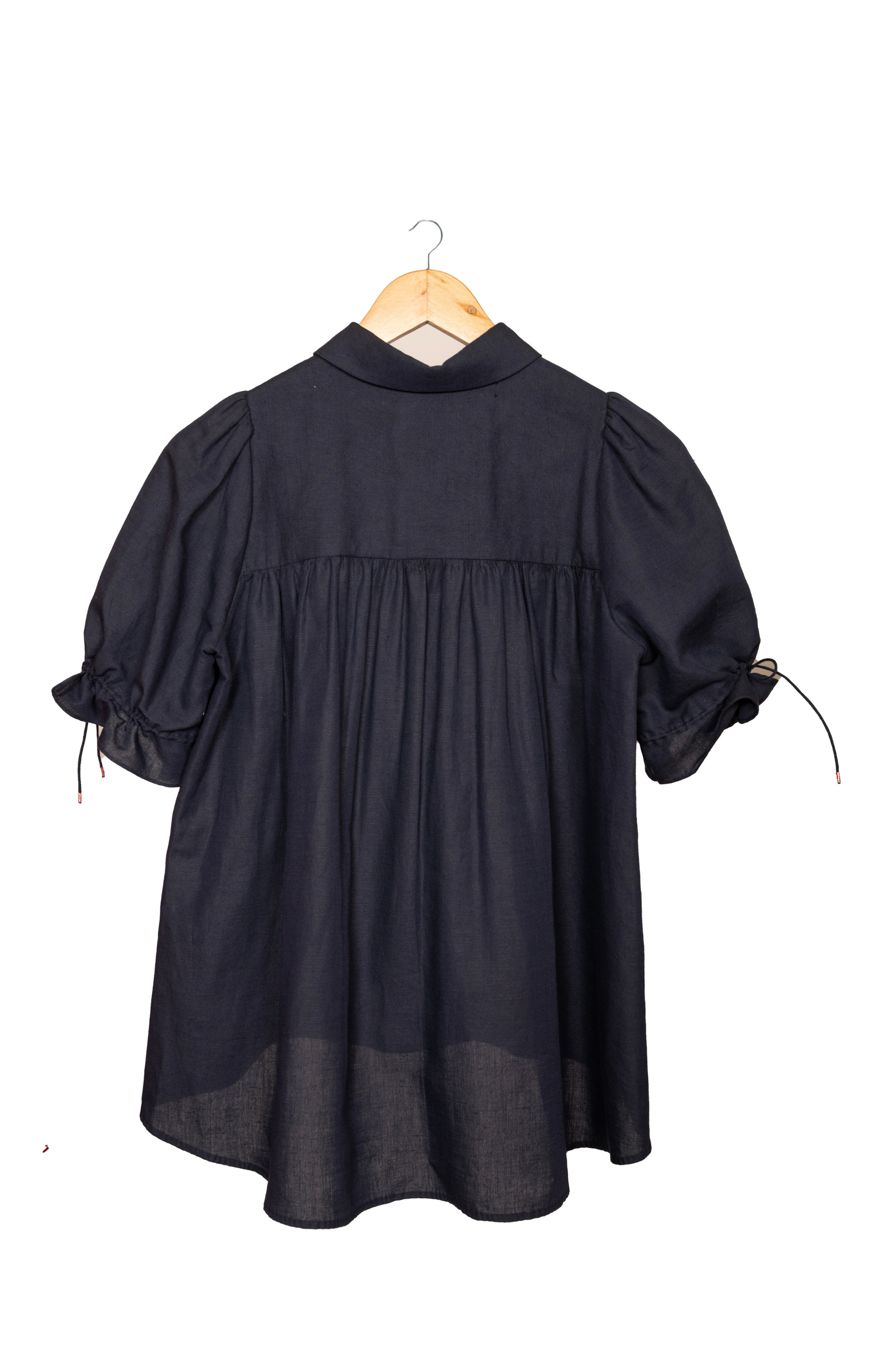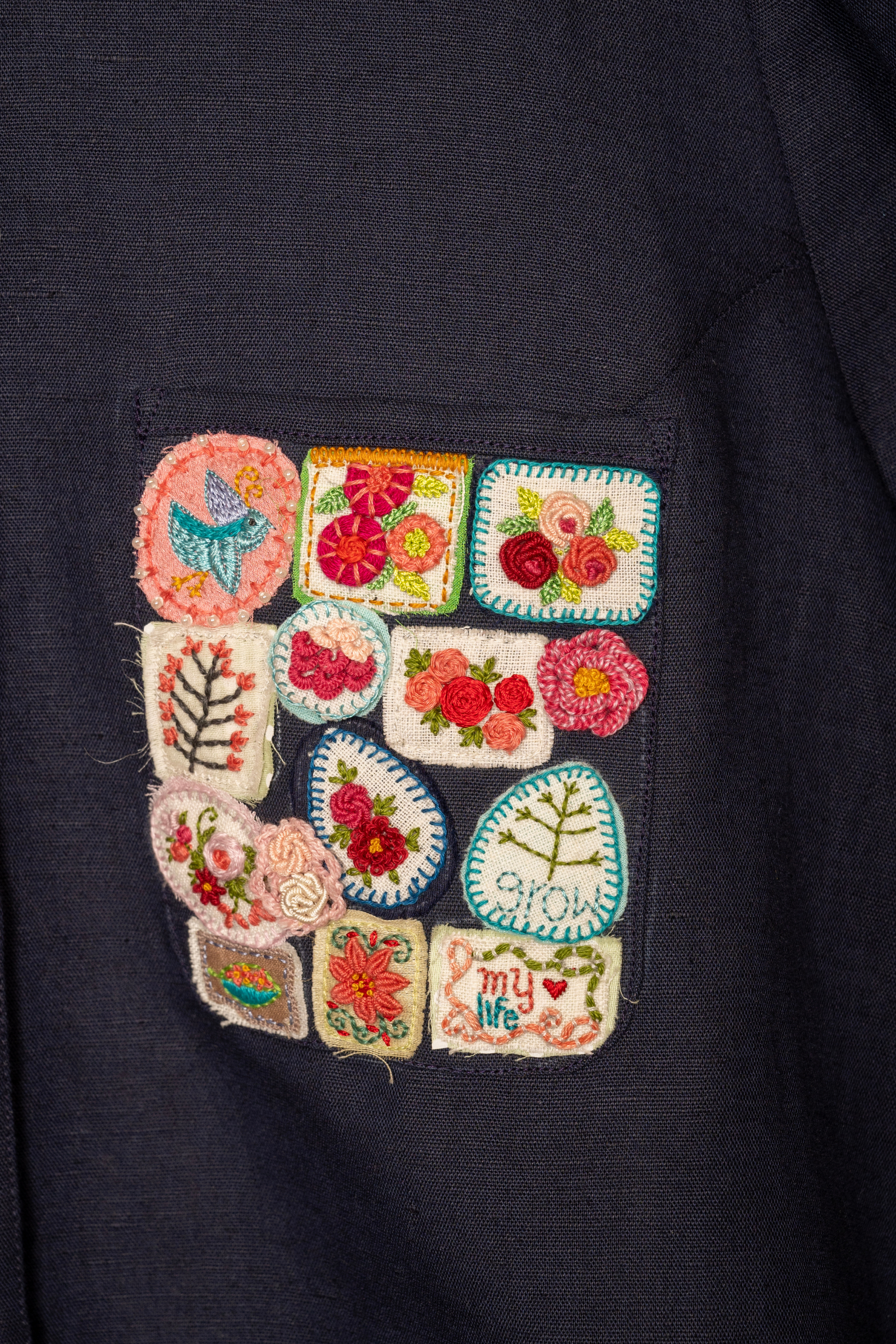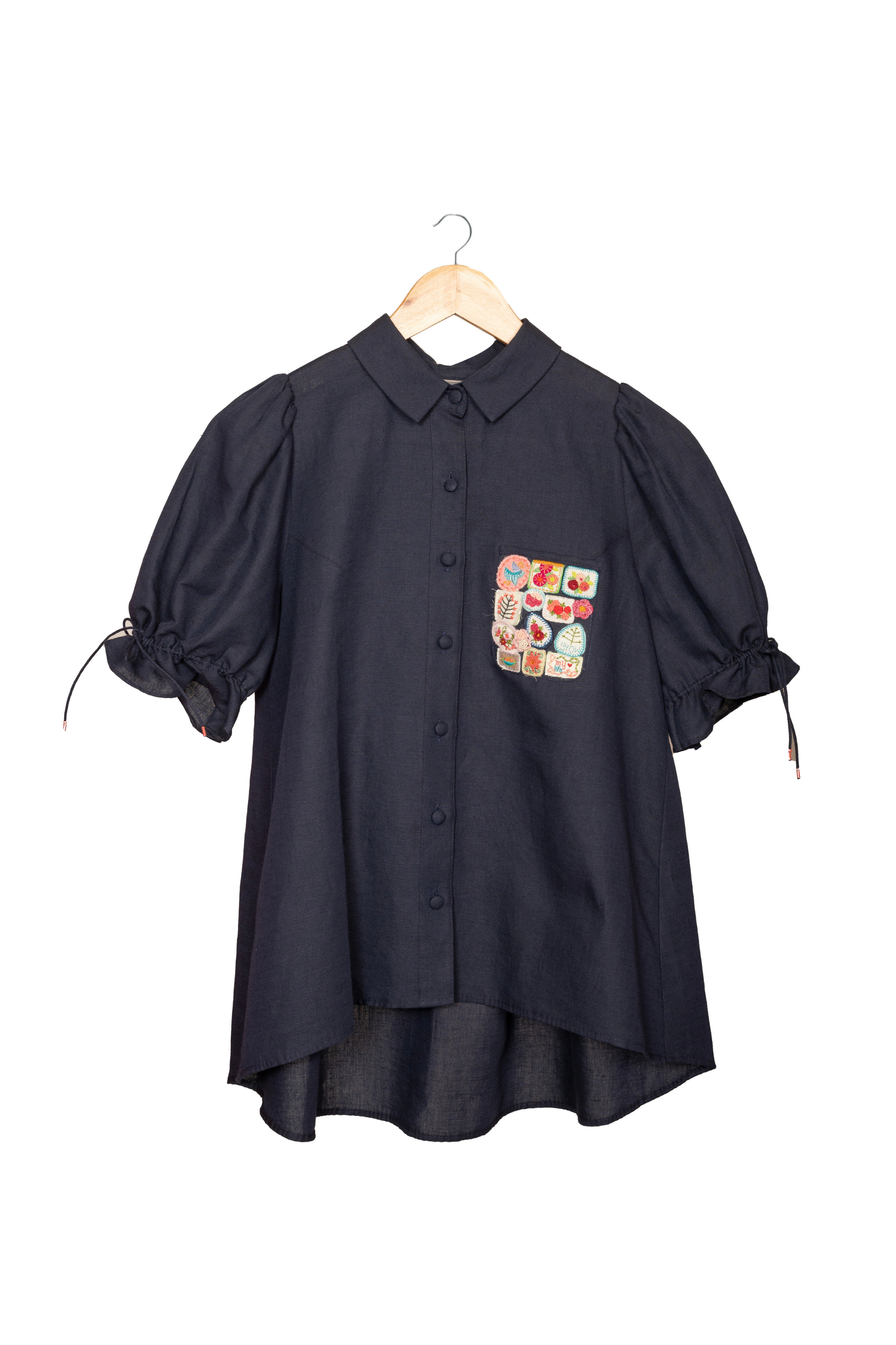 Grandma Attic is like a keepsake from another time, this navy blue linen tunic carries the warmth of nostalgia. A patchwork pocket adorned with crochet, buttons, flowers, and a hidden message from grandma makes it quietly sentimental. Its cute and comfortable styling makes it a cherished summer favorite, perfect for slow days, storytelling sessions, and cozy afternoons.