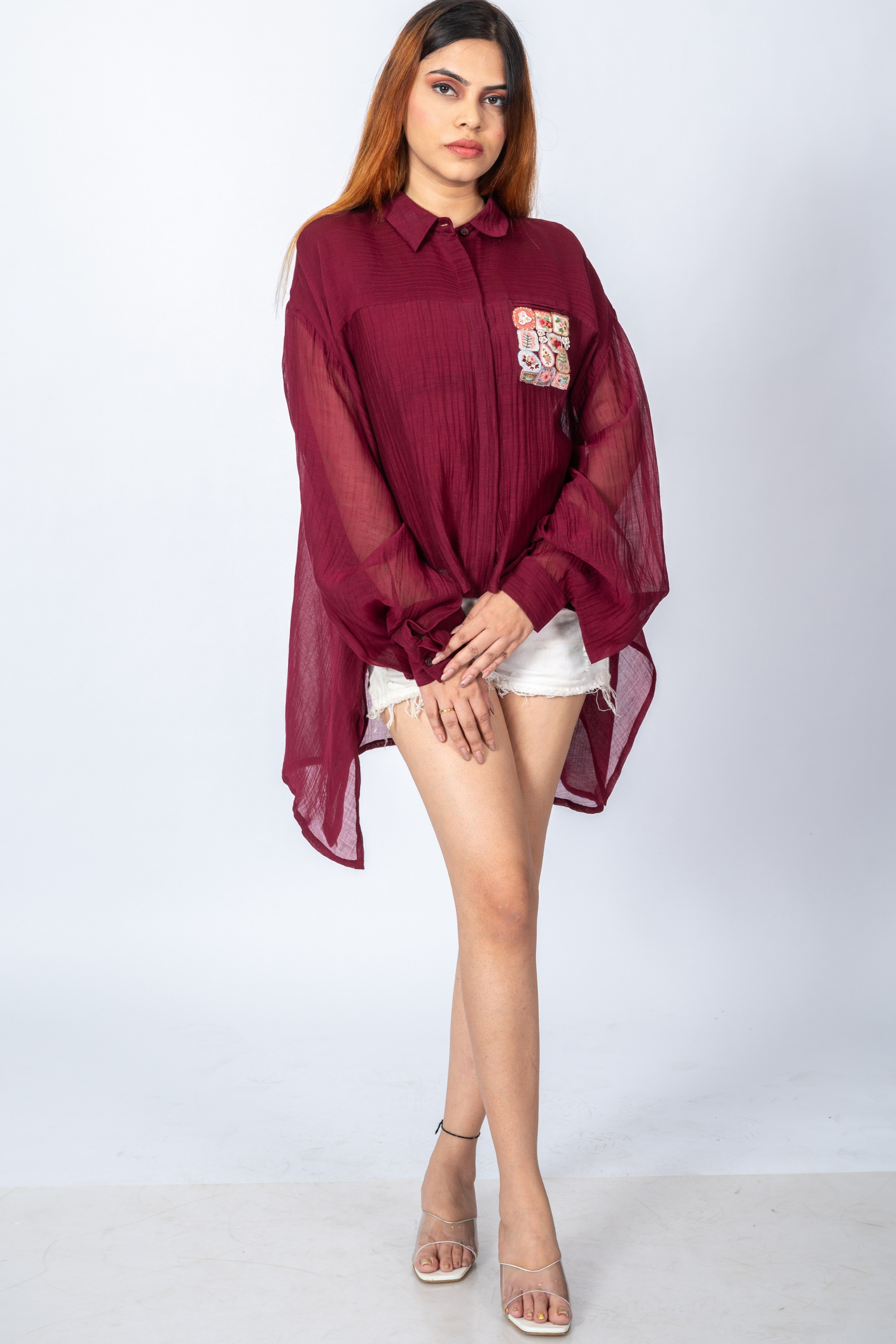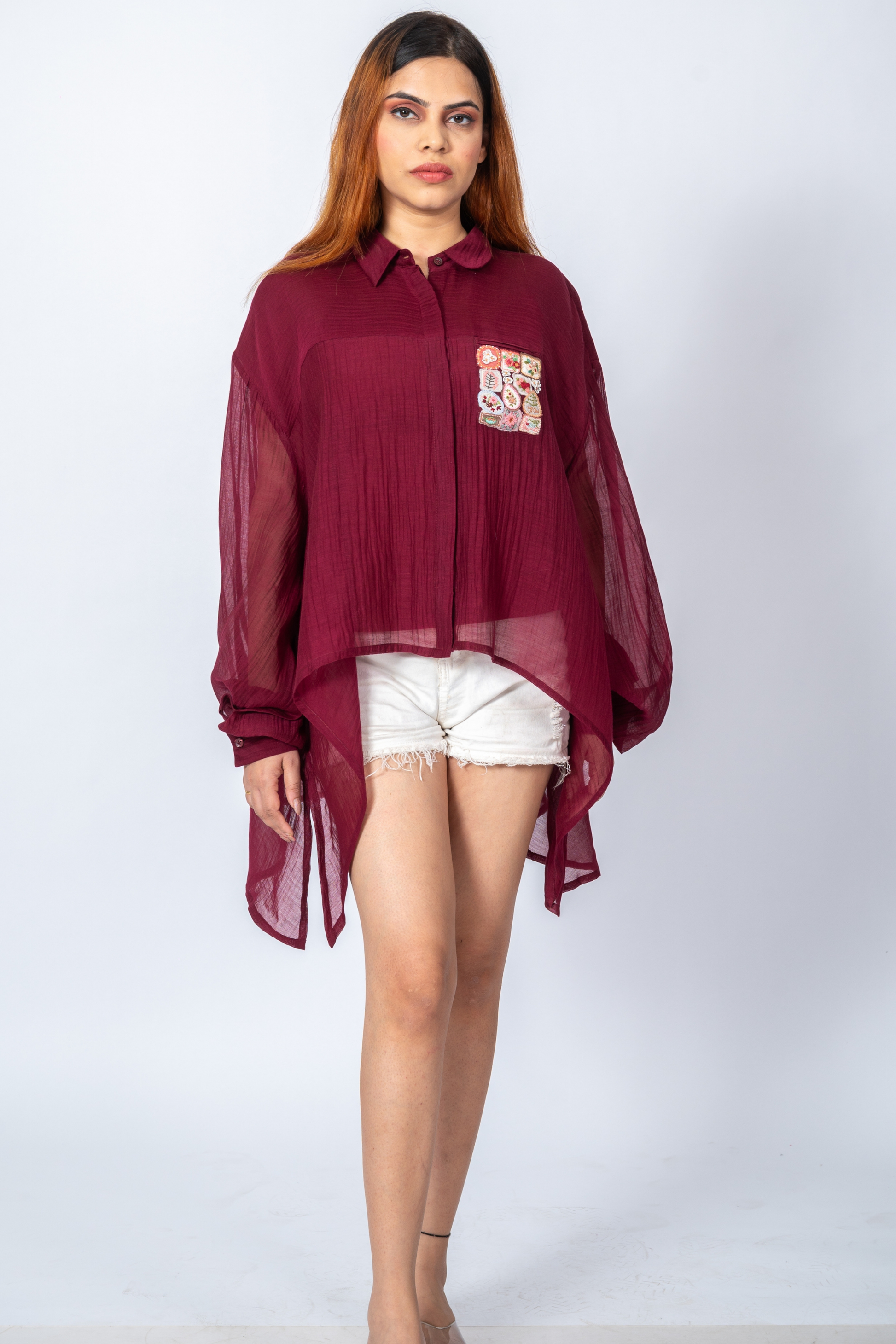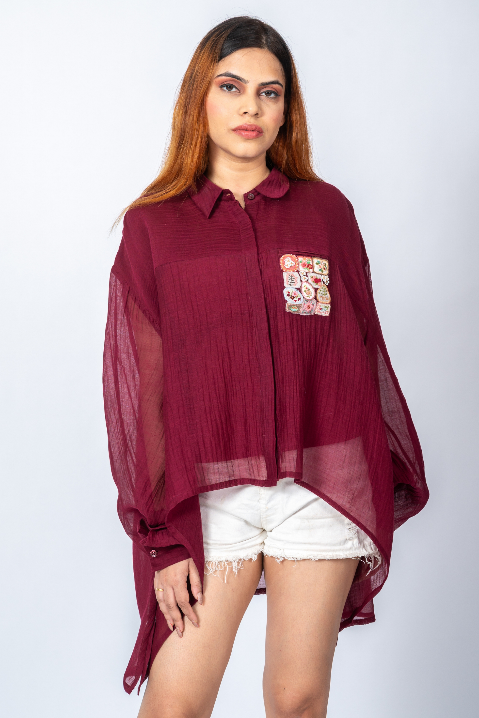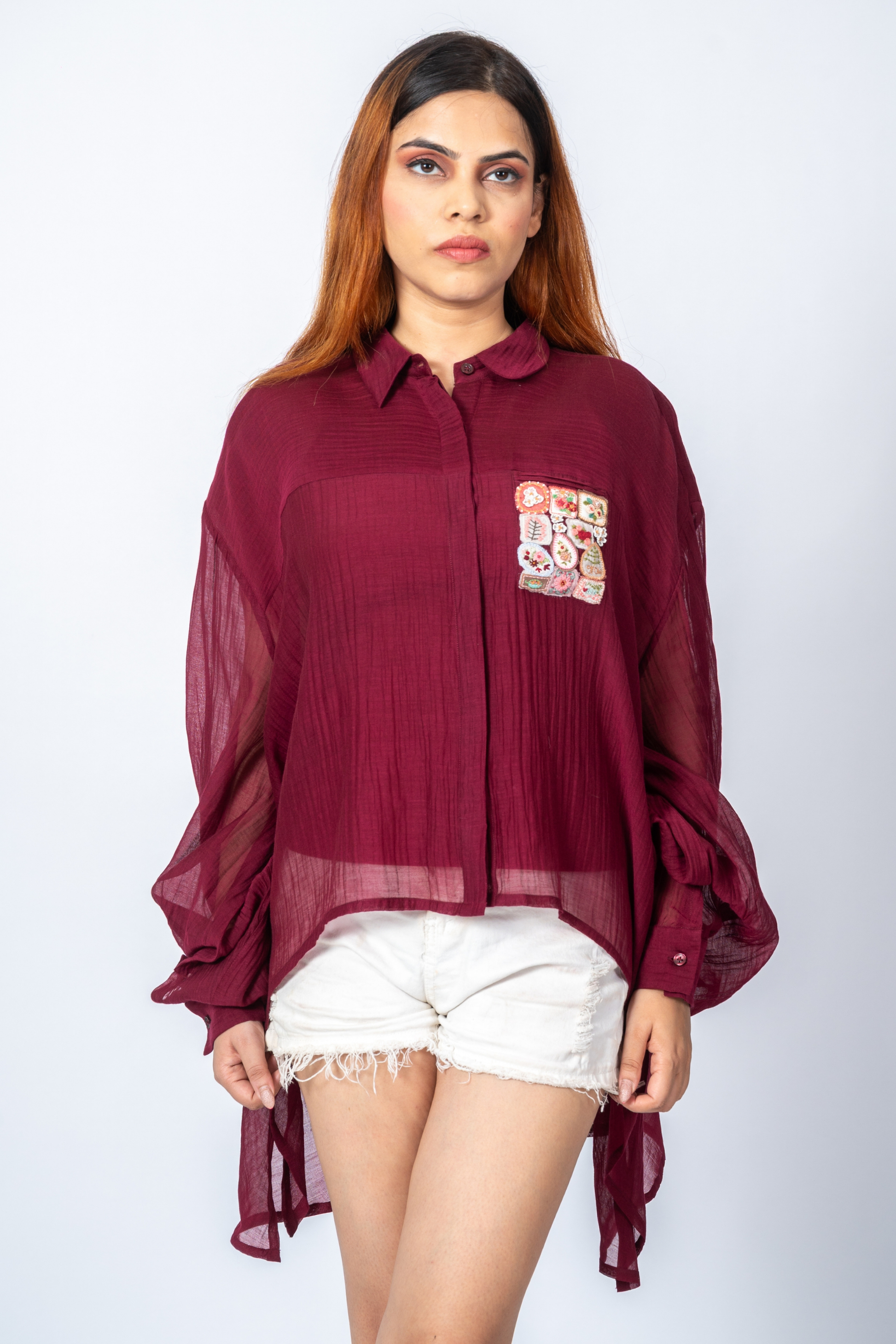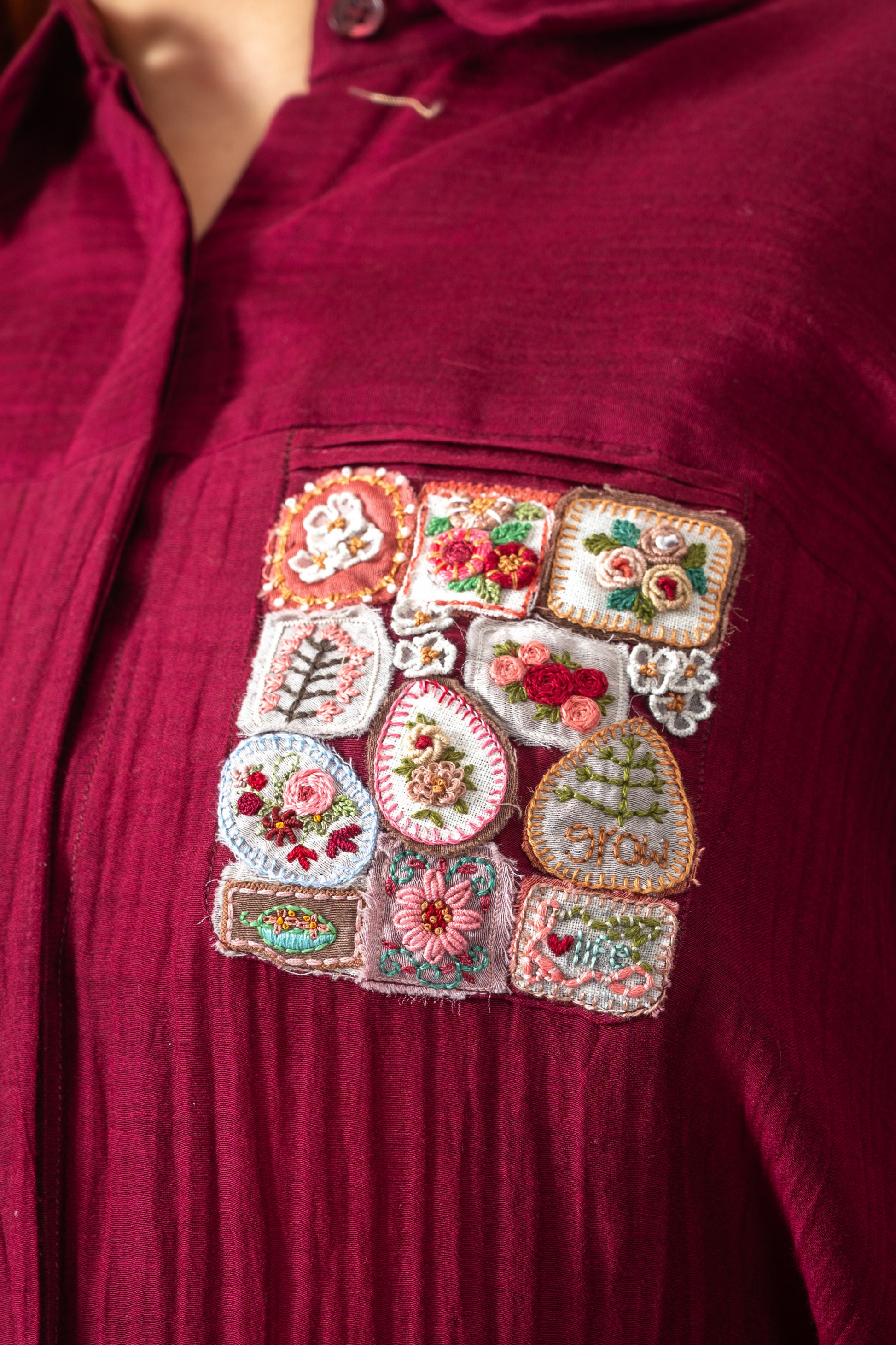 The Valentine shirt falls in a gentle A-line cut, creating an easy, flattering silhouette. A single pocket blooms with patchwork and delicate rose and jasmine embroidery—like pressed flowers tucked away for safekeeping. A soft ode to love, stitched with quiet care.