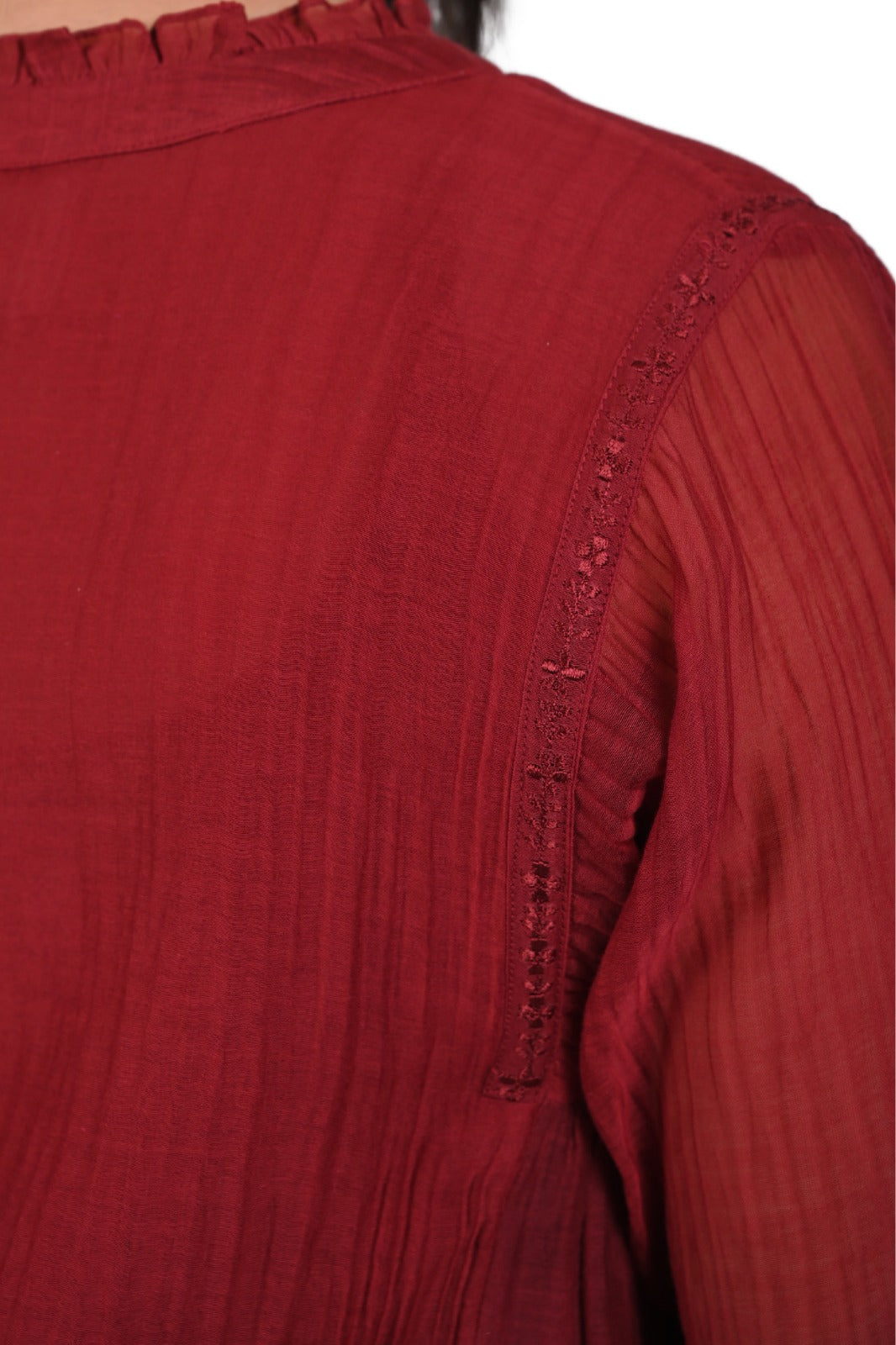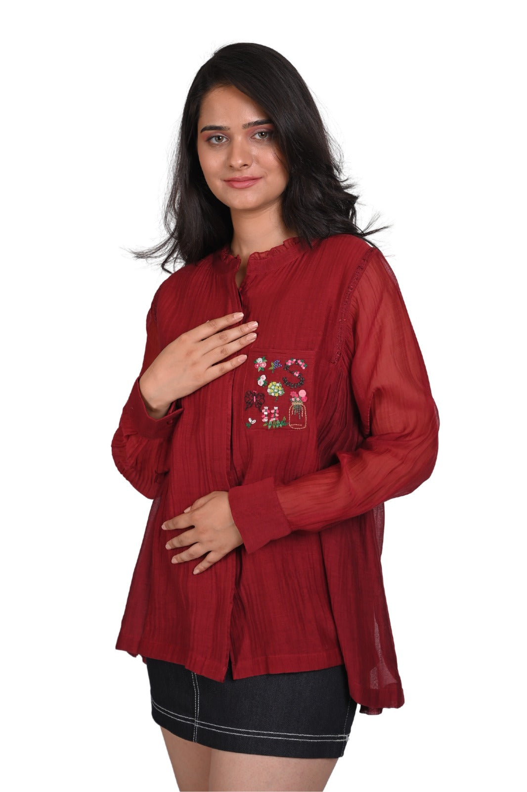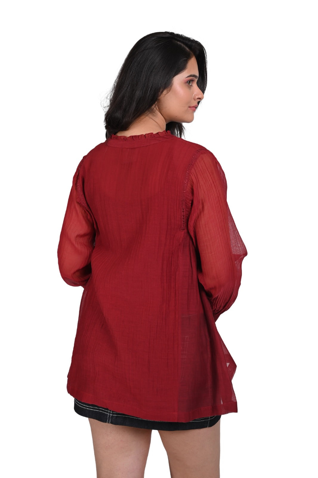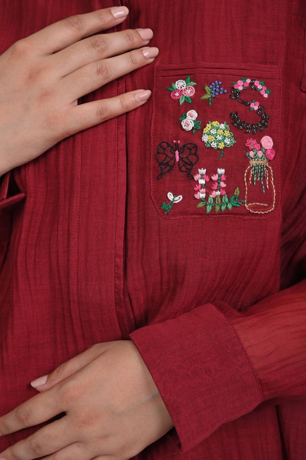 Wish 1.0 is a little note to yourself, stitched in threads that matter. This mauve chanderi mulmul top lets you personalise it with your own initials, making it truly one of a kind. Embellished with delicate butterflies, florals, and bouquets, and finished with soft side gathers, it’s a piece full of quiet sentiment. Perfect for slow mornings, meaningful outings, or gifting to someone dear.